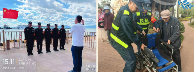 From guiding crowd flow in commercial complexes to patrolling and guarding scenic spots; from managing entry and exit registration at ship terminals to conducting security inspections at key institutions—every corner of the National Day and Mid-Autumn Festival holidays is graced by the upright figures of security guards. They give up precious moments with their families, working around-the-clock in rotating shifts, meticulously checking every detail and promptly addressing each need. With every minute of their work, they embody the word "safety," truly demonstrating responsibility and dedication through their actions.